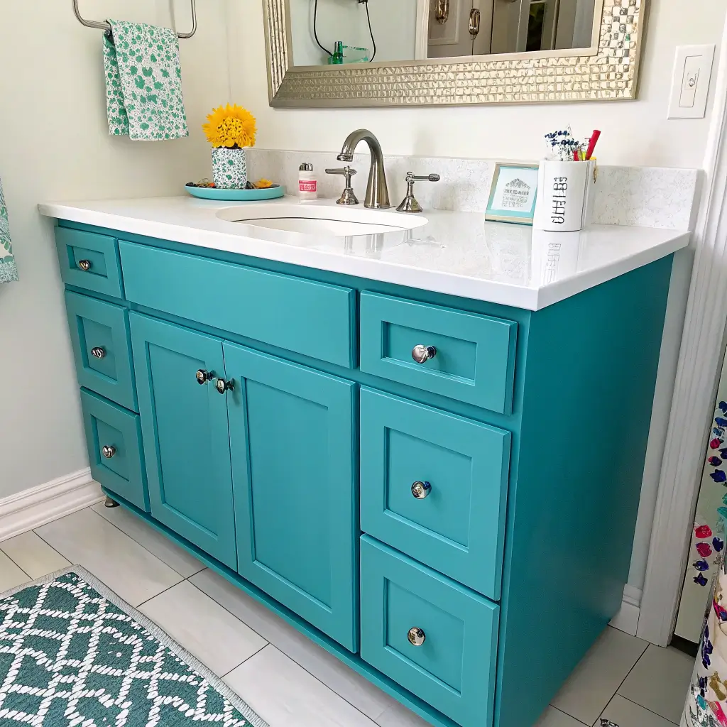 I painted my powder room vanity in a deep emerald green last year, and every single guest comments on it. The key is choosing a color that makes you happy every time you see it. Navy blue, coral pink, even sunshine yellow – if it speaks to you, go for it!