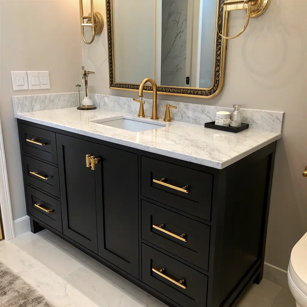 This combo screams sophistication without trying too hard. I helped my best friend create this look in her master bath, and wow – black cabinets with gold hardware instantly elevate any space.