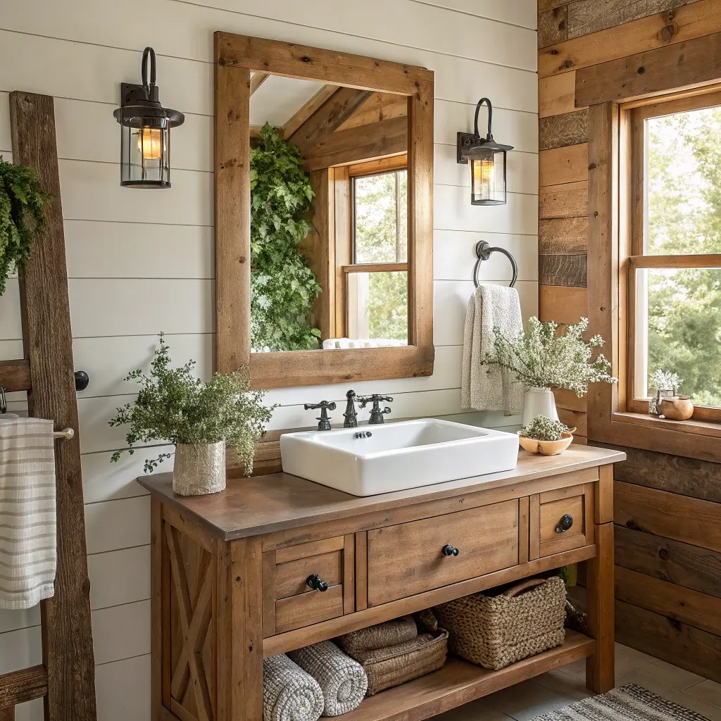 Now, if you’re going for that farmhouse chic vibe that makes everyone want to drink coffee in your bathroom (weird flex, but okay), rustic wooden frame mirrors are your best friend. These mirrors bring warmth and character that metal or plastic frames just can’t match.