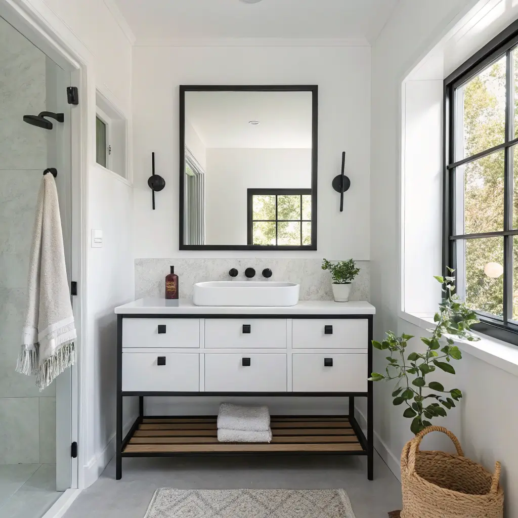 Sometimes less really is more, and minimalist black frame mirrors prove it every single time. These sleek designs work in literally any bathroom style – from ultra-modern to surprisingly traditional. Think of them as the little black dress of bathroom mirrors.