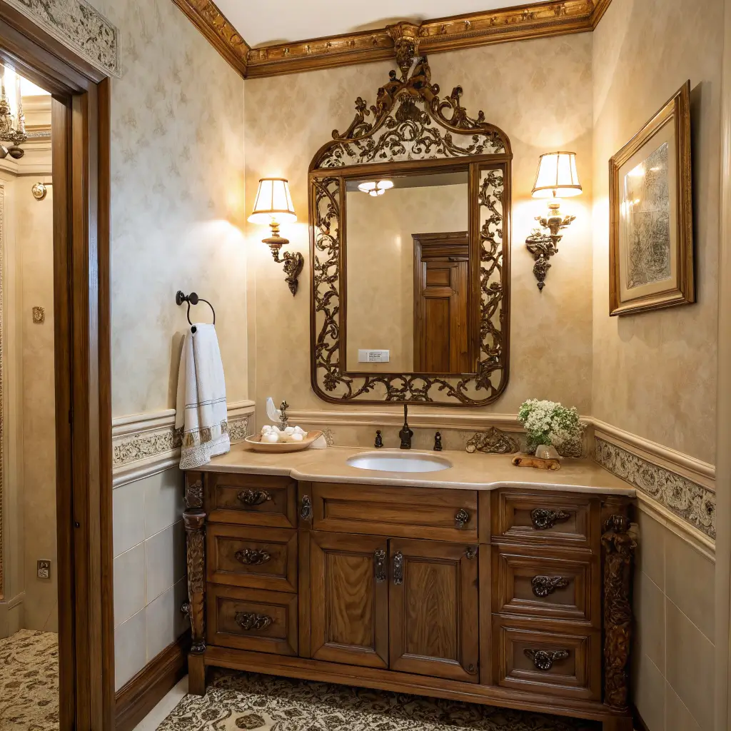 Want your bathroom to tell a story? Antique vintage mirrors bring instant character and history to any space. These aren’t just mirrors; they’re conversation pieces that make guests do a double-take.