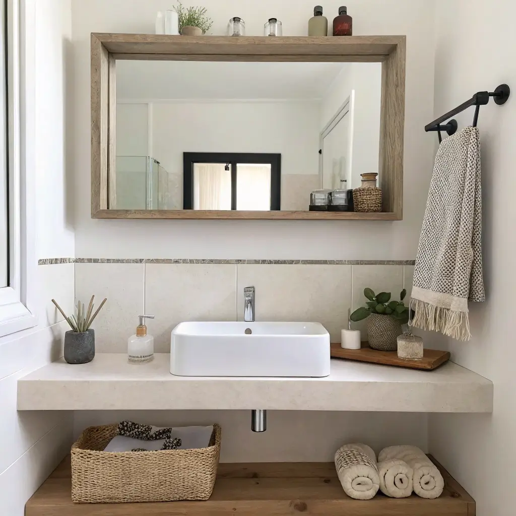 These clever designs typically feature a shelf running along the bottom or integrated into the frame itself. Perfect for holding your daily essentials, small plants, or those fancy hand soaps you only bring out for guests.