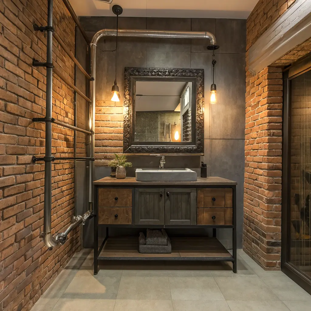 The best part about industrial mirrors? They’re practically indestructible. Unlike delicate frames that chip or tarnish, pipe frames age beautifully and can handle all the humidity your bathroom throws at them.