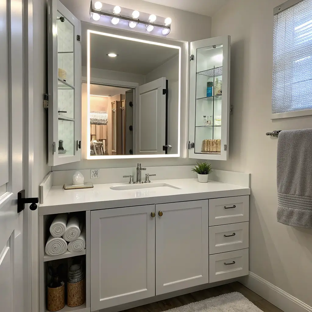 Today’s versions feature soft-close hinges, integrated lighting, electrical outlets inside, and even built-in magnifying mirrors. Some models have adjustable shelving that accommodates everything from tall bottles to tiny containers.