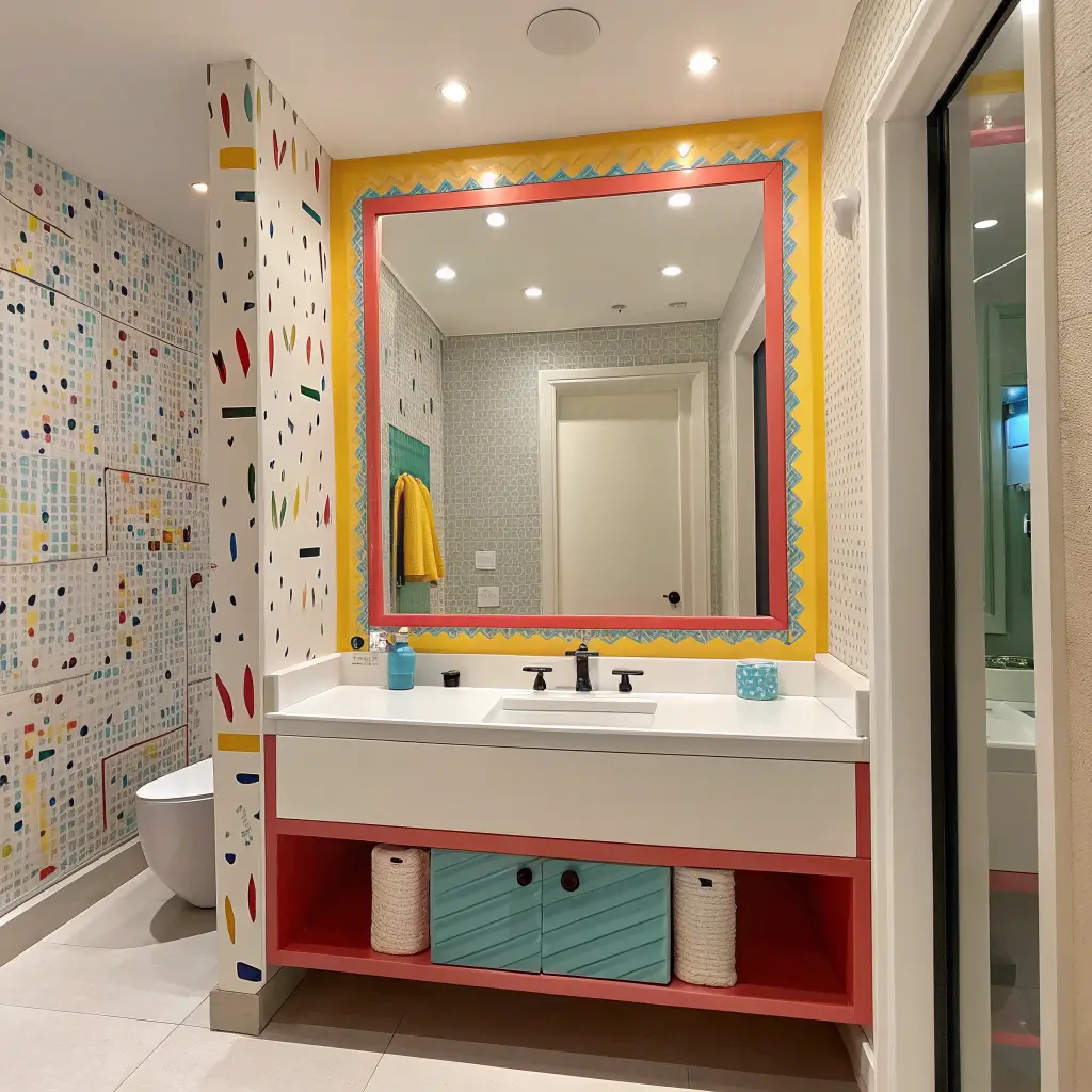 Who says bathrooms have to be neutral? Colorful frame mirrors inject personality and fun into spaces that often play it too safe. We’re talking bold blues, vibrant greens, or even hot pink if you’re feeling brave!