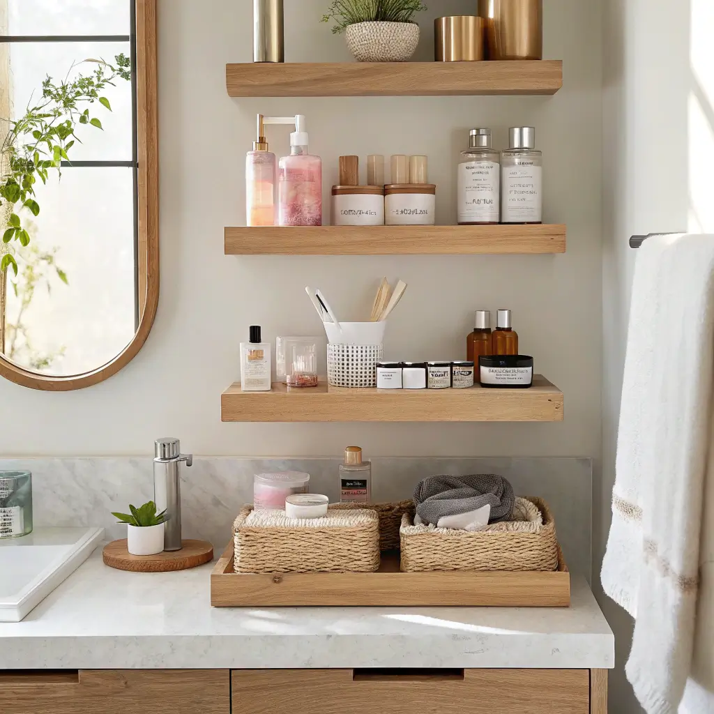 I’ll admit it—I was skeptical about floating shelves at first. Wouldn’t everything just fall off? Turns out, they’re game-changers for vanity organization, especially when drawer space runs out.