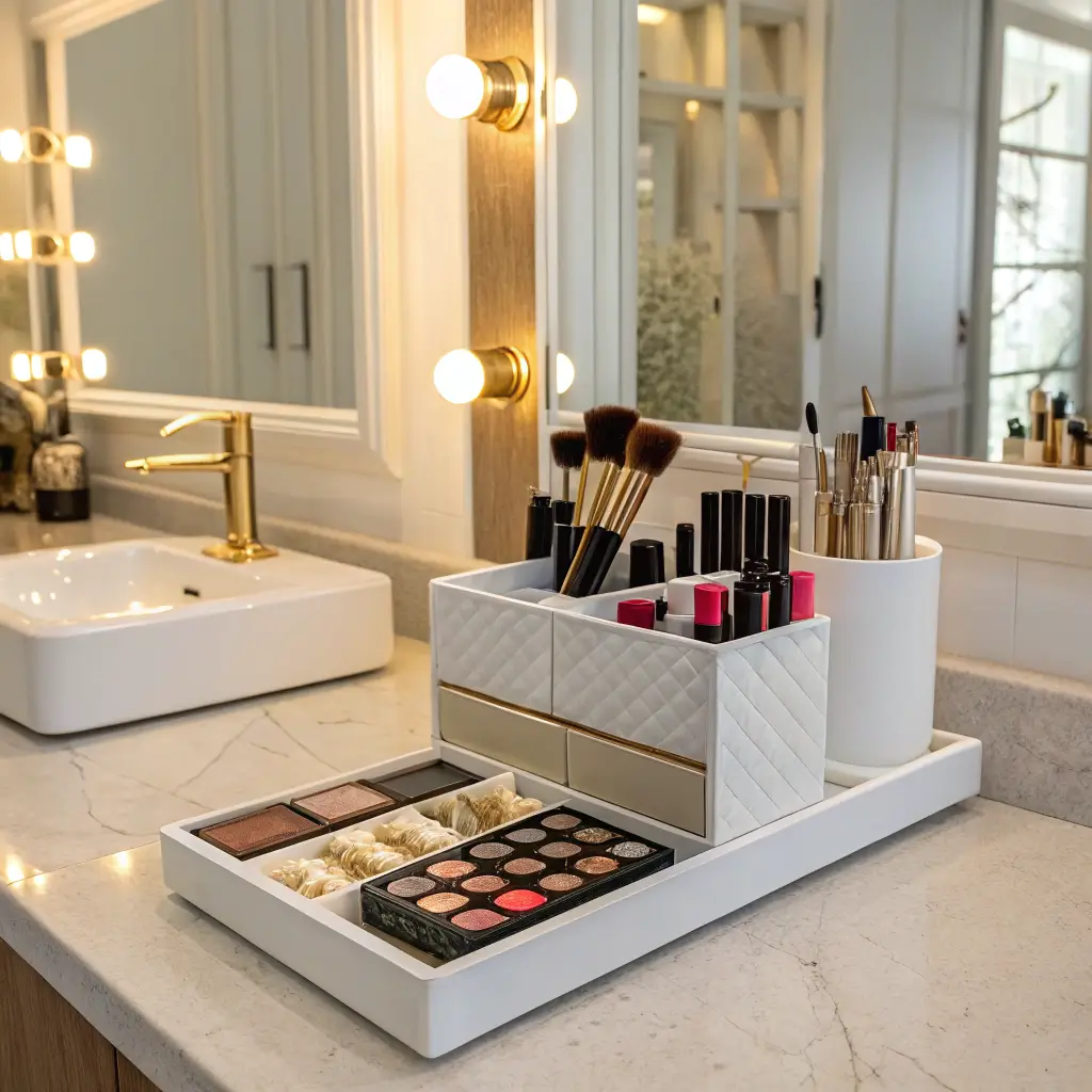 The best organization system is one you’ll actually maintain. If color-coding feels like too much work, skip it. If you love the look of glass jars but hate cleaning them, choose something else. Your vanity should make your life easier, not become another chore.