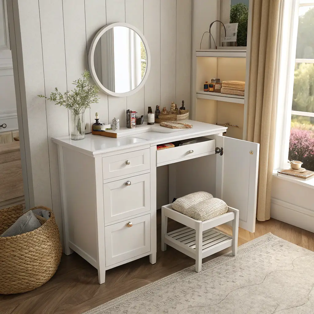 Remember, the best vanity setup isn’t necessarily the most expensive or elaborate – it’s the one that fits your lifestyle and space. Start by honestly assessing your needs: Do you share the bathroom? How much makeup do you actually own? Would you really use a seated area, or do you prefer standing?