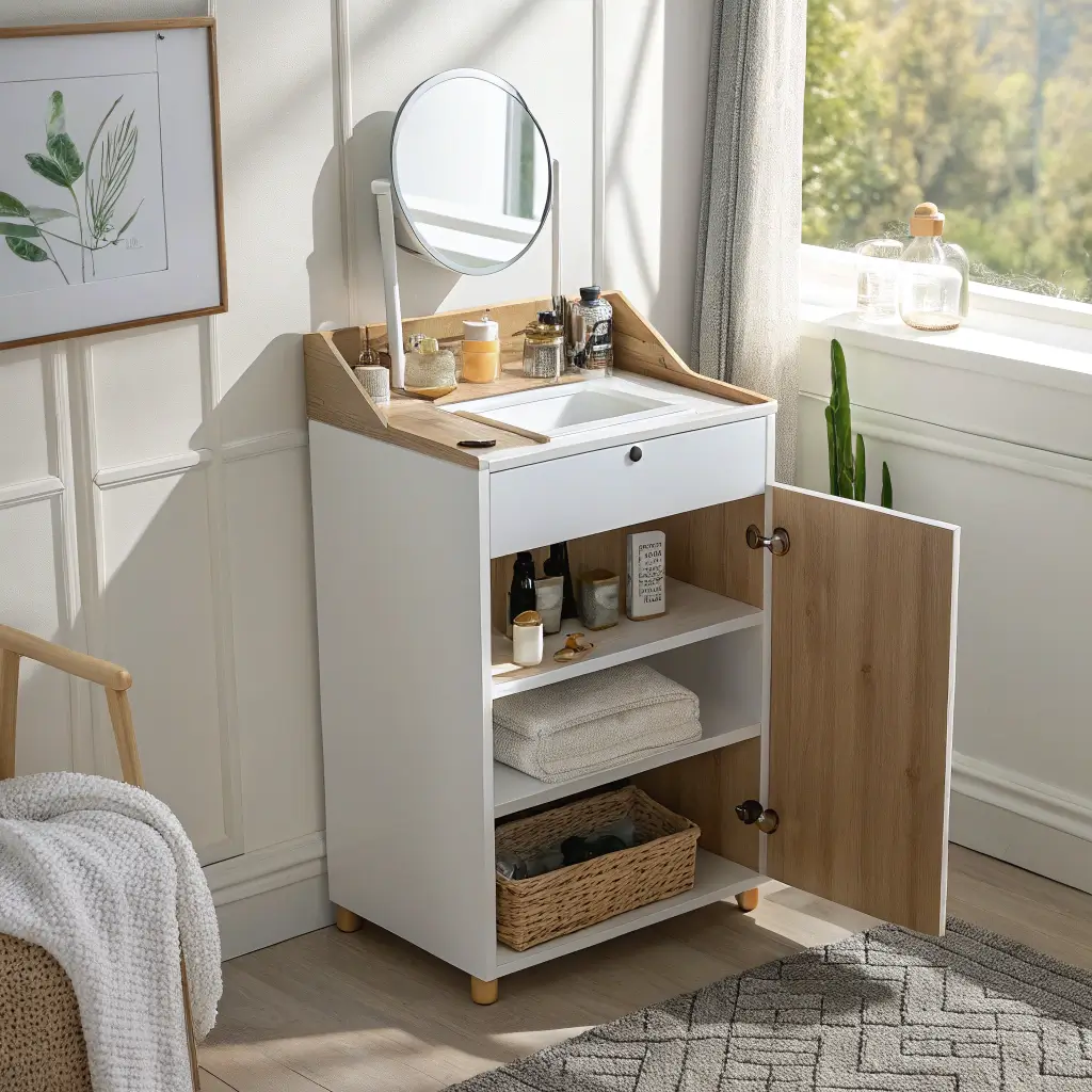 You get your dedicated glam zone without sacrificing precious bathroom real estate, and honestly? Your relationship might even survive the morning rush hour.