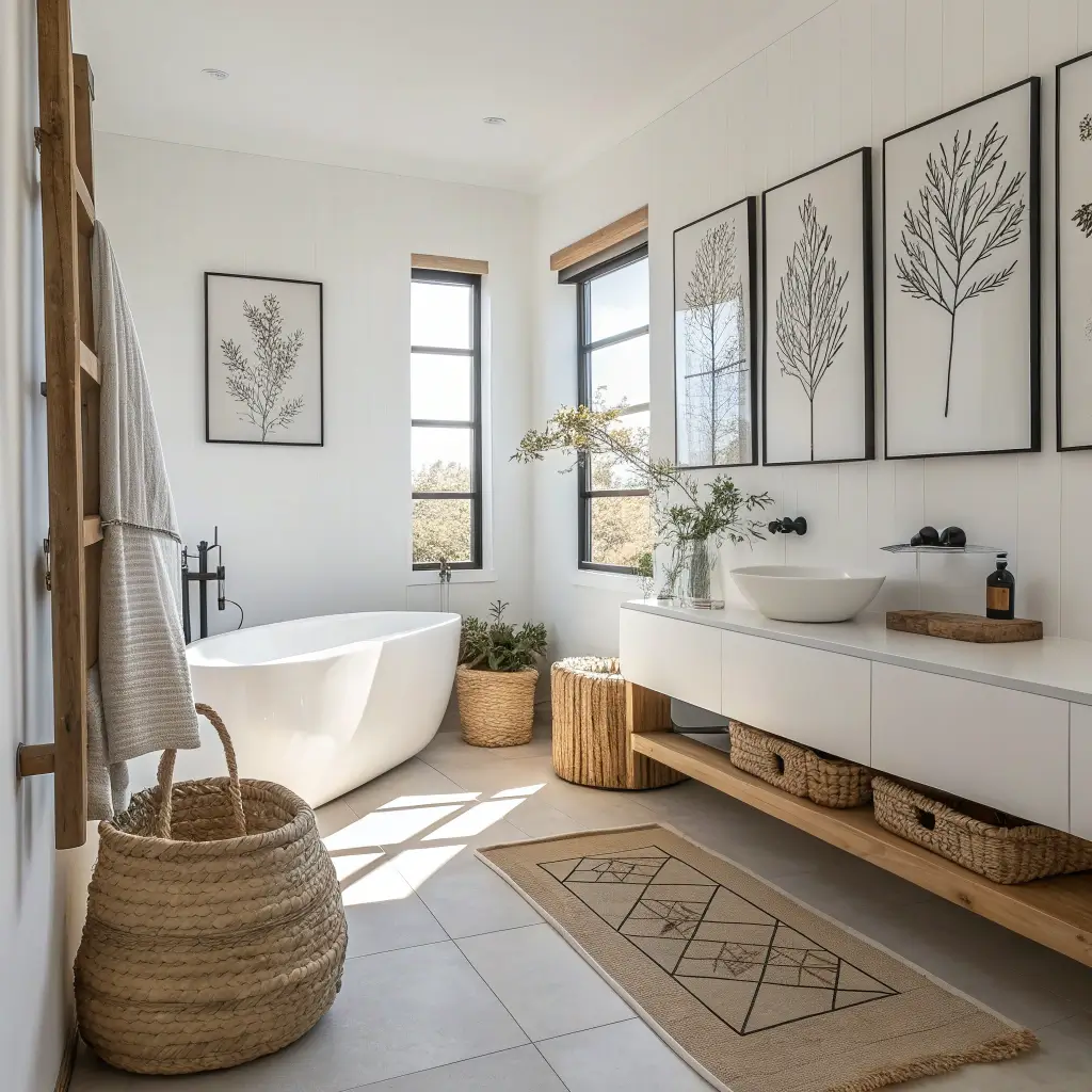 My personal favorite? A single oversized botanical line drawing above the towel rack. It adds interest without making the space feel cluttered, and guests always compliment it. The key is choosing pieces that complement your existing fixtures rather than compete with them.