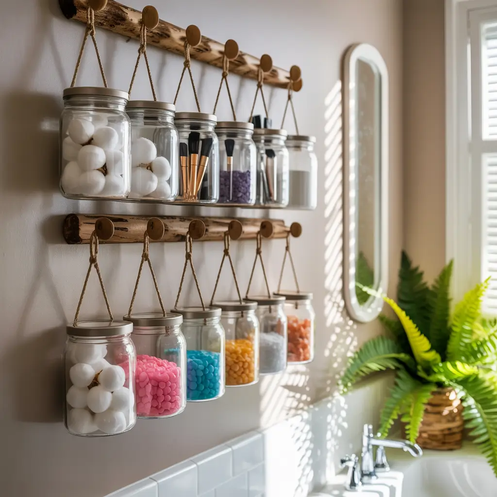Hanging Glass Jars for Bathroom Essentials