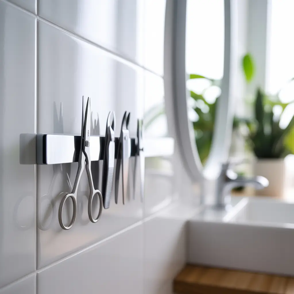 The best part? Magnetic strips cost under $15 and take minutes to install. Best bang for your buck in bathroom organization, hands down.