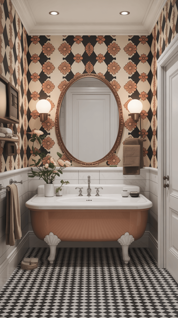 - Mix eras: Pair a Victorian floral pattern with a sleek, modern floating vanity. The contrast is what makes it feel fresh and intentional, not like you time-traveled from 1890.