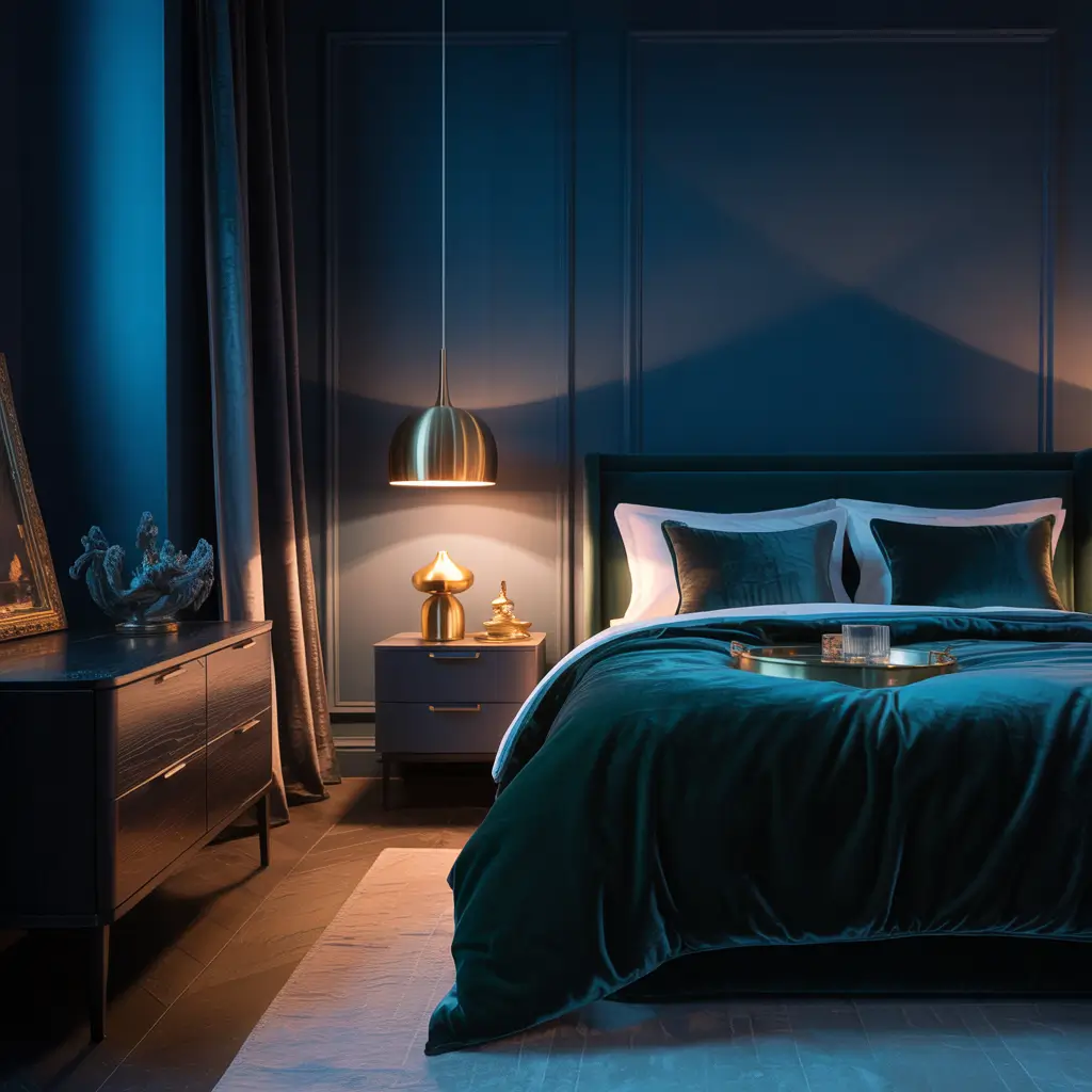 Color palette stays neutral but rich – think navy, charcoal, cream, and gold. Add a bench at the foot of your bed, install dimmer switches, and maybe splurge on blackout curtains. Your sleep quality will thank you.