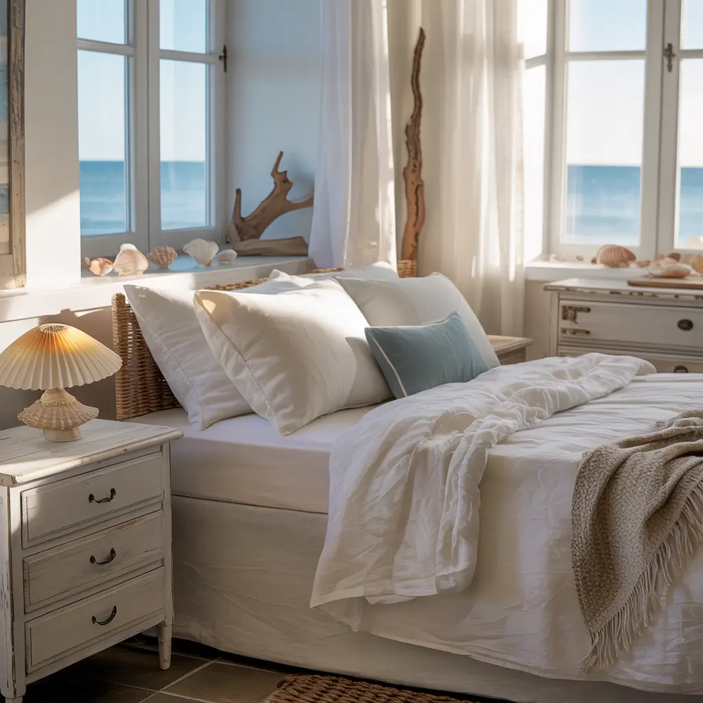 Avoid going overboard with the theme – you want coastal elegance, not beach gift shop. Think weathered wood furniture, linen bedding, and maybe one piece of coral or a few shells. The goal is feeling the beach breeze, not living in a seafood restaurant.