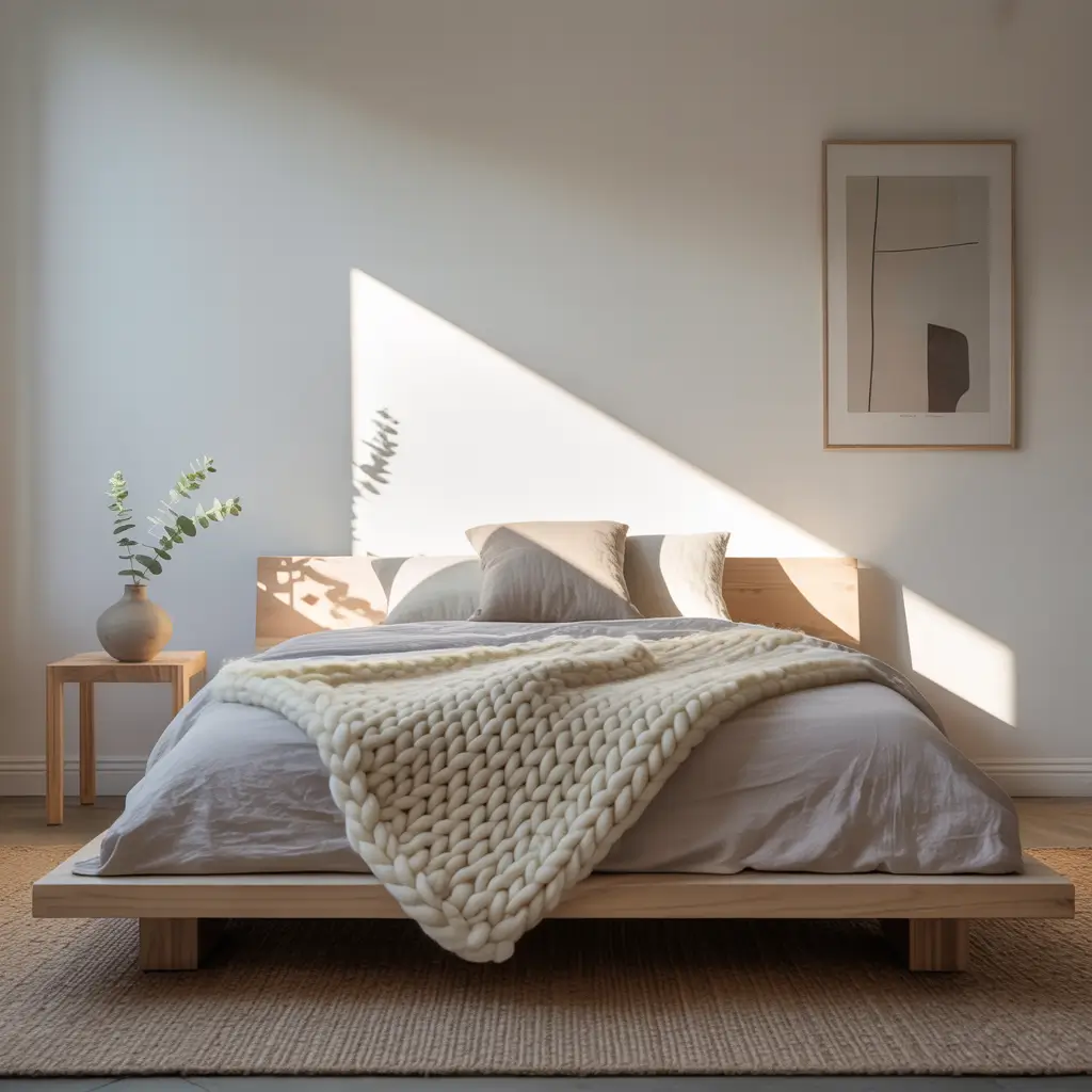 Hygge bedrooms focus on creating atmosphere through soft lighting, natural materials, and enough blankets to survive an ice age. Think of it as aggressive coziness—you’re actively pursuing comfort like it’s your job.