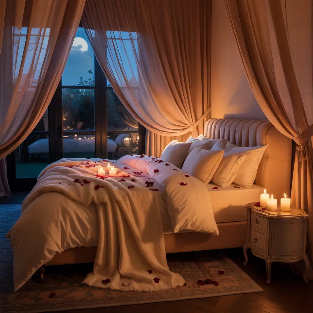 What really makes a bedroom romantic? It’s the attention to sensory details. The way candlelight flickers on the ceiling, the feel of silk pillowcases, the subtle scent of lavender—these elements create an atmosphere that makes you want to slow down and savor the moment.