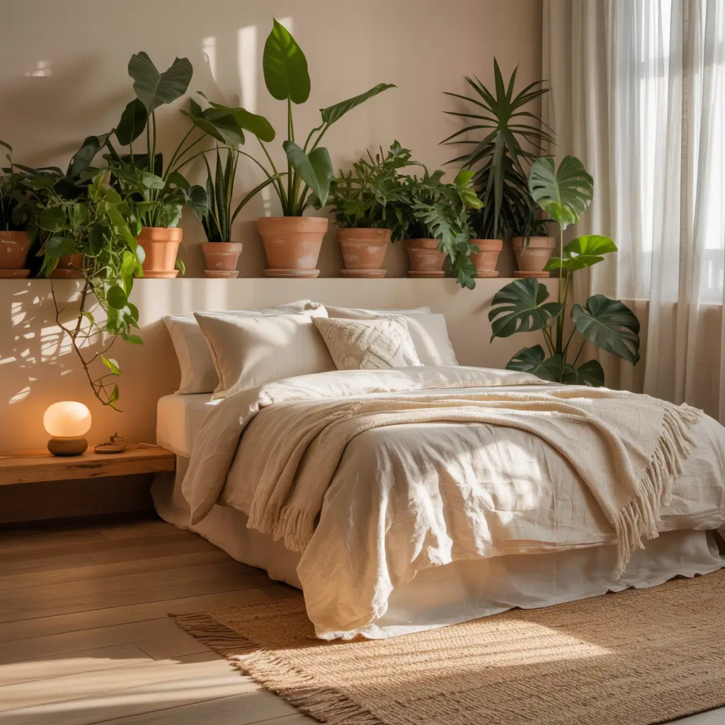 Plant-filled bedrooms offer more than just Instagram appeal. They literally clean your air, add natural color, and create a connection to nature that grounds the space. Plus, caring for plants gives you a morning routine that doesn’t involve immediately checking your phone.