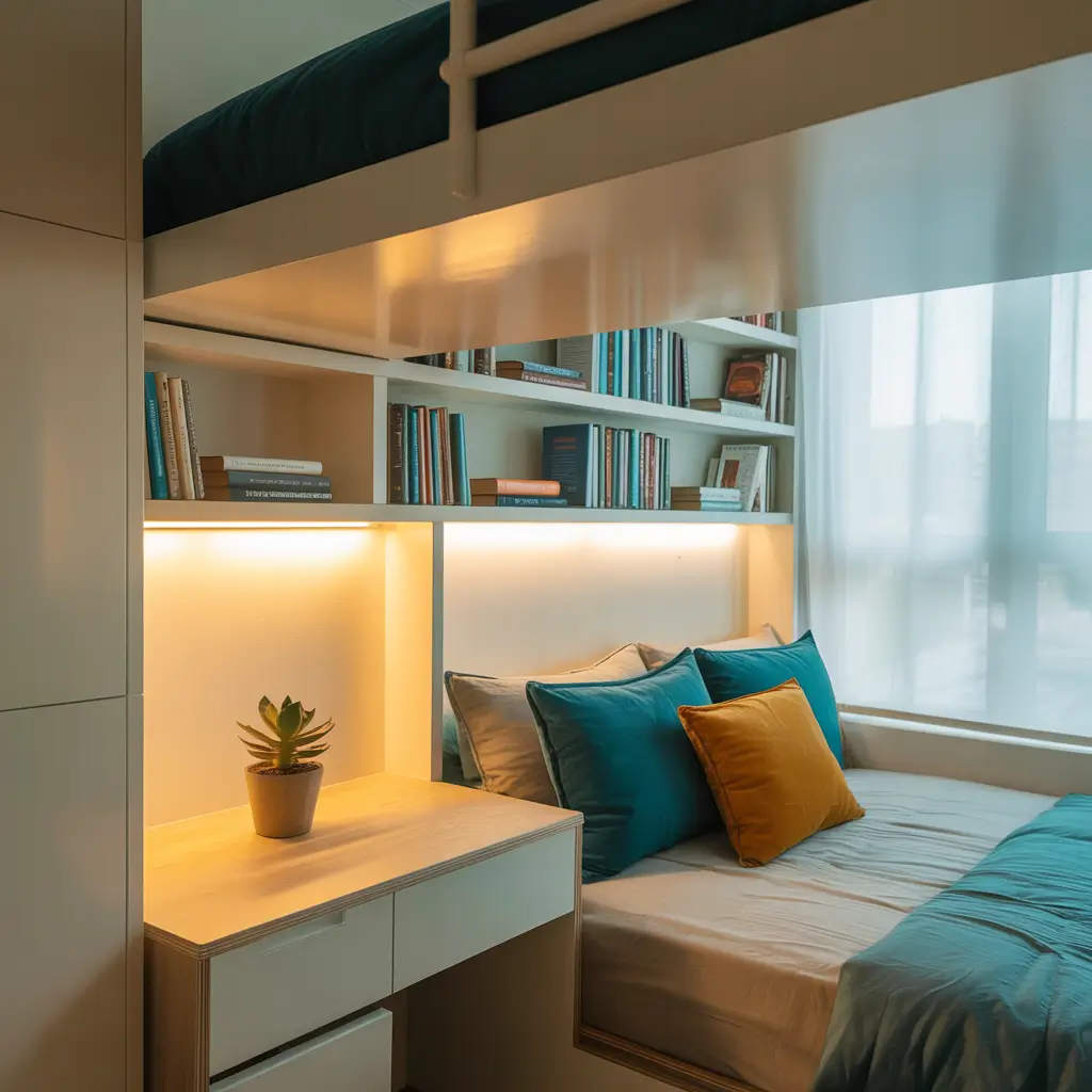 Maximize your mini bedroom with these space-saving strategies: