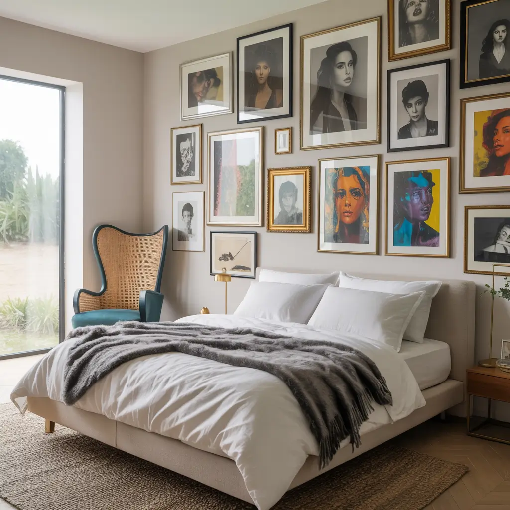 Artistic Gallery Wall Bedroom