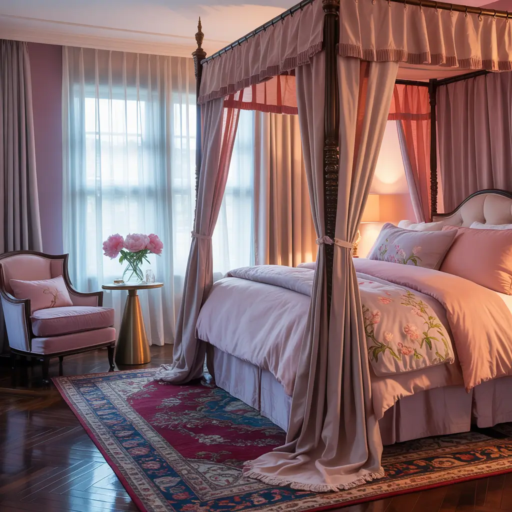 Soft, flowing fabrics define romantic style. Canopy beds, sheer curtains, and layers of plush bedding create that dreamy atmosphere. Add some fresh flowers, scented candles, and you’ve set the perfect scene.
