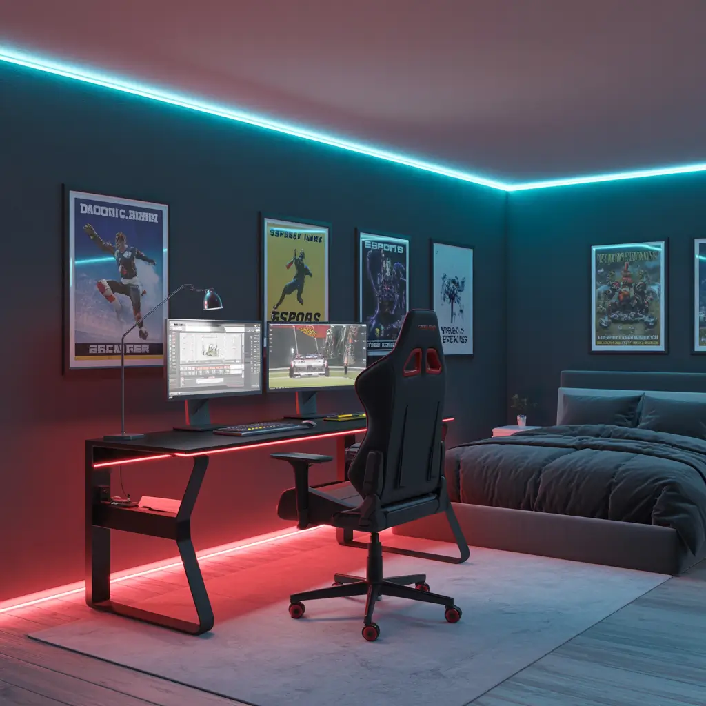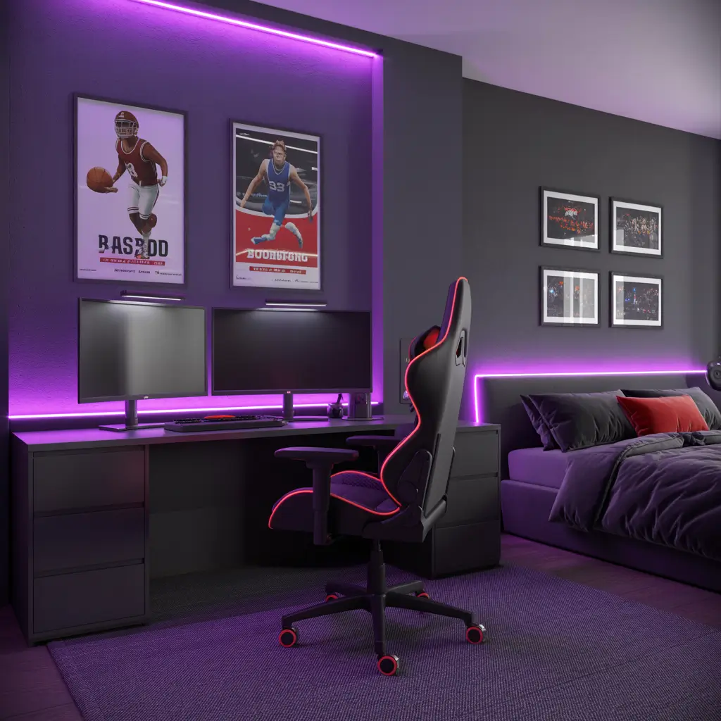 Sporty Gamer Bedroom Setup