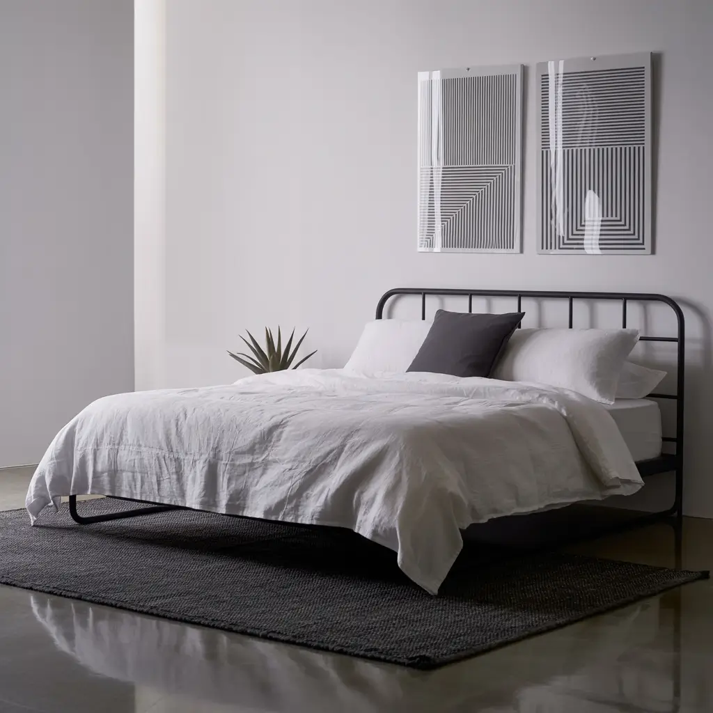 - Metal bed frame (preferably black iron or gunmetal)