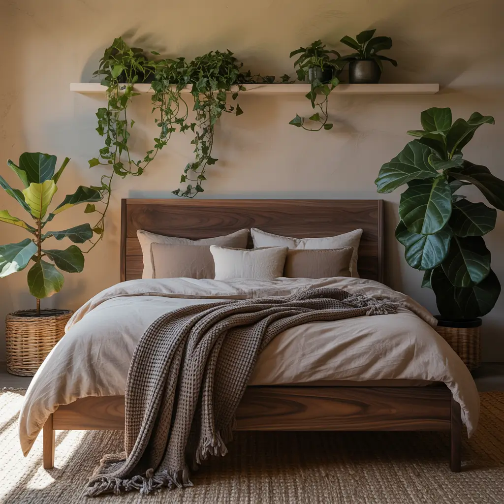 Bringing the outdoors in isn’t just for Pinterest—it actually improves your mental health and sleep quality. Natural materials, earth tones, and living plants create a bedroom that feels like a retreat.