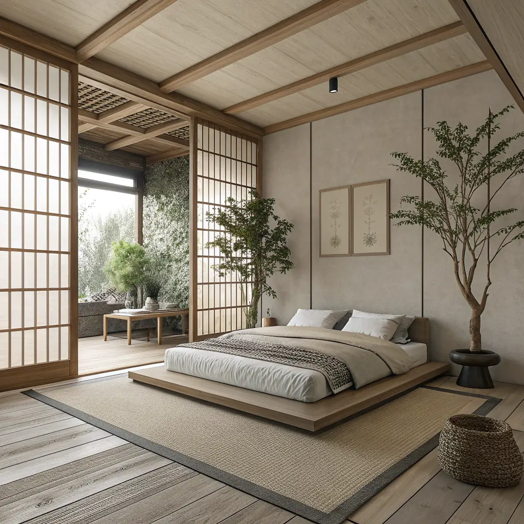 I keep furniture low-profile and leave plenty of open floor space. The bed gets a simple frame (or sometimes just a mattress on a low platform), and storage stays minimal and functional. No clutter, no unnecessary decoration – just pure, calming simplicity.