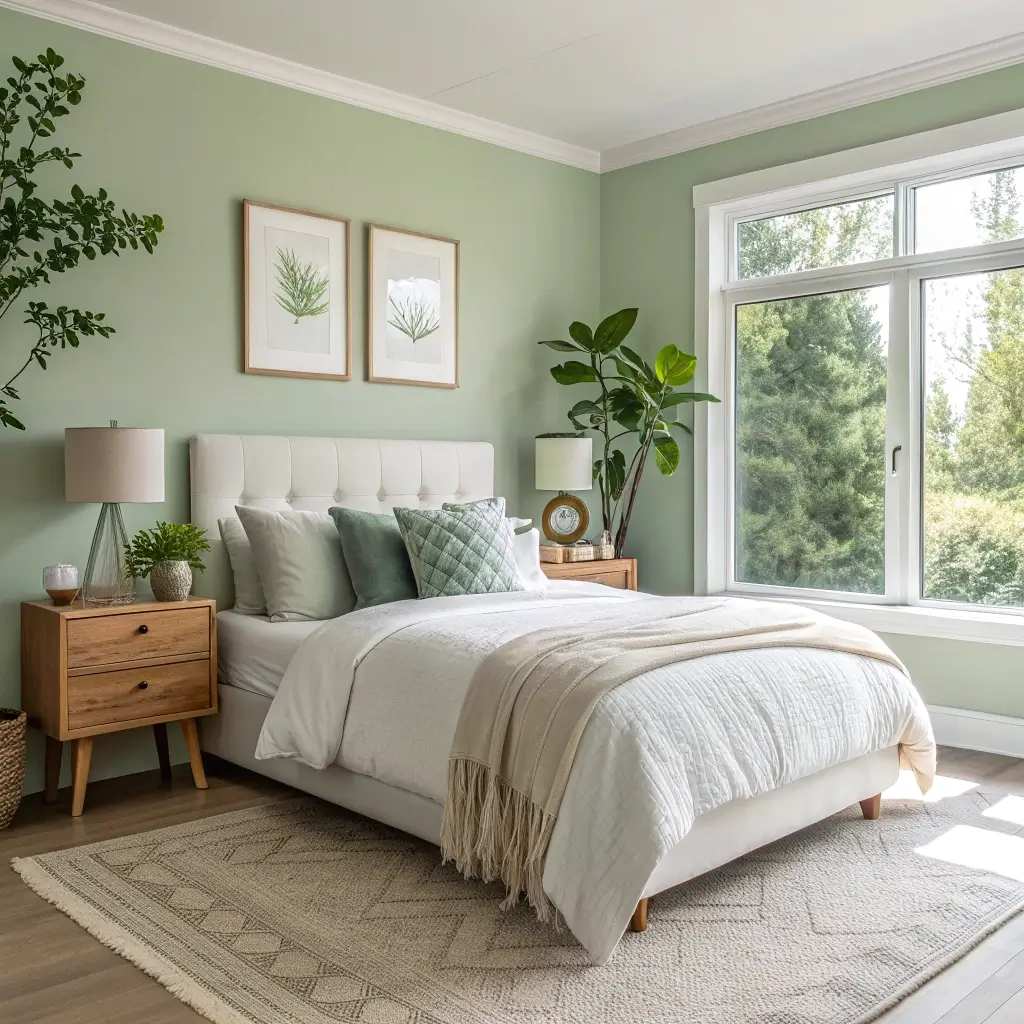 Pro tip: Sage green looks absolutely stunning with natural wood furniture and white linens. Add some brass accents, and you’ve got yourself an Instagram-worthy bedroom without even trying.