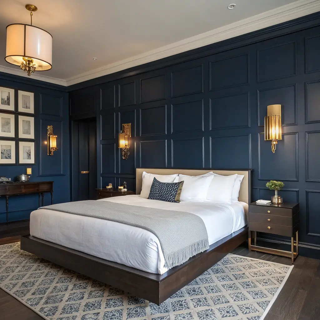Moody Navy Bedroom Accent Wall