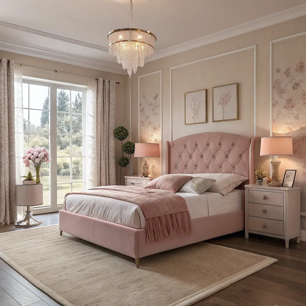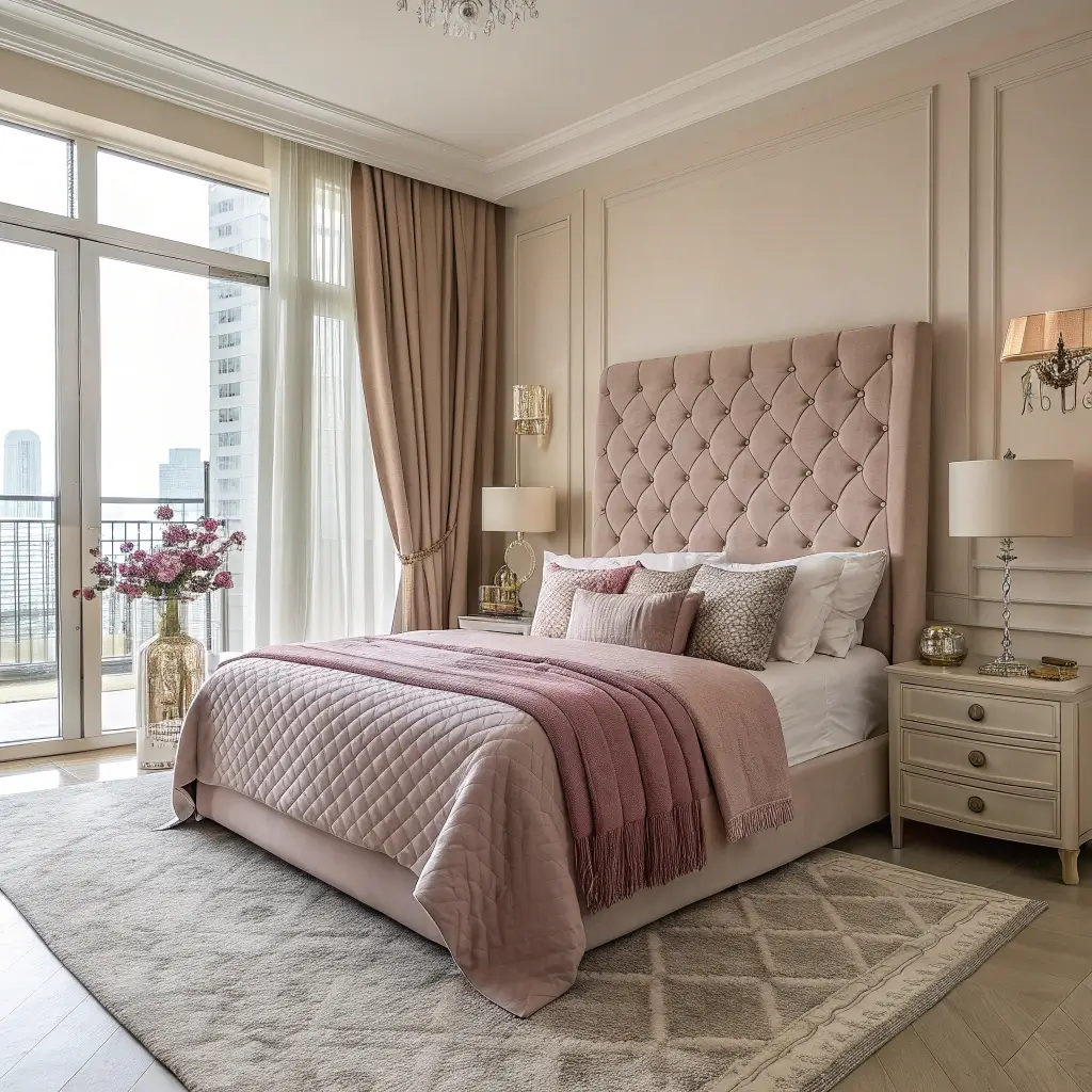 Elegant Beige and Mauve Pink Bedroom