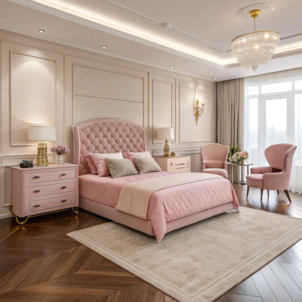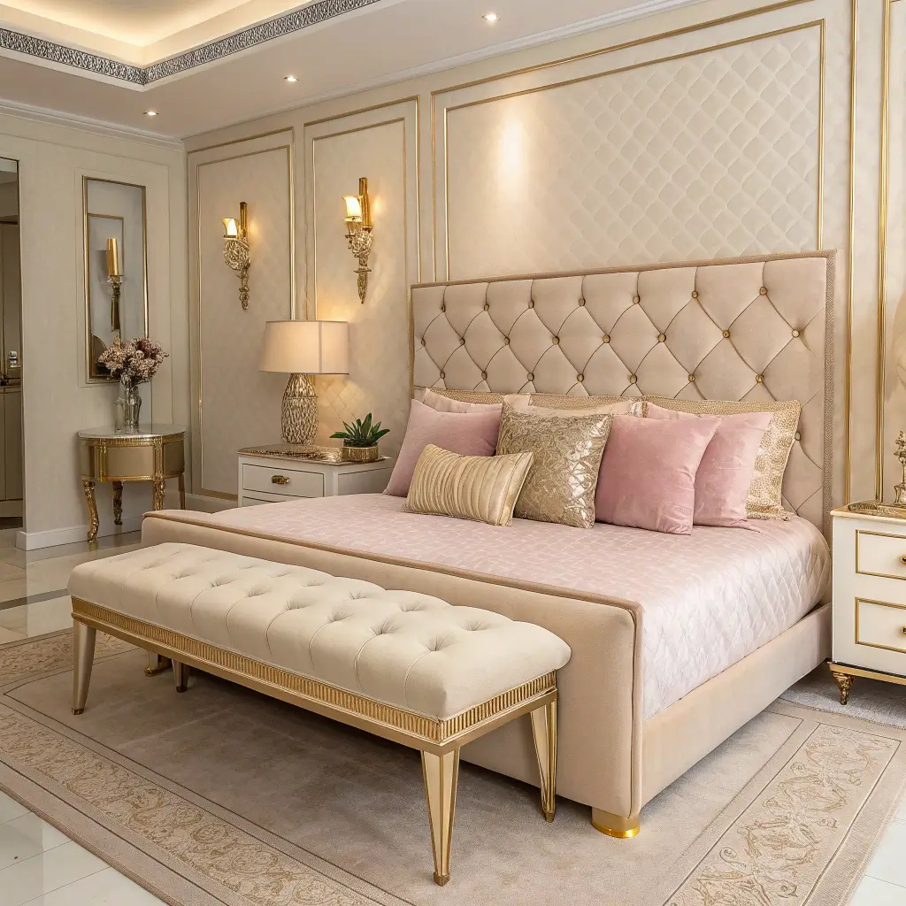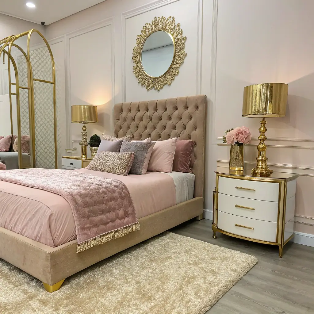 Beige and Pink Bedroom with Gold Details