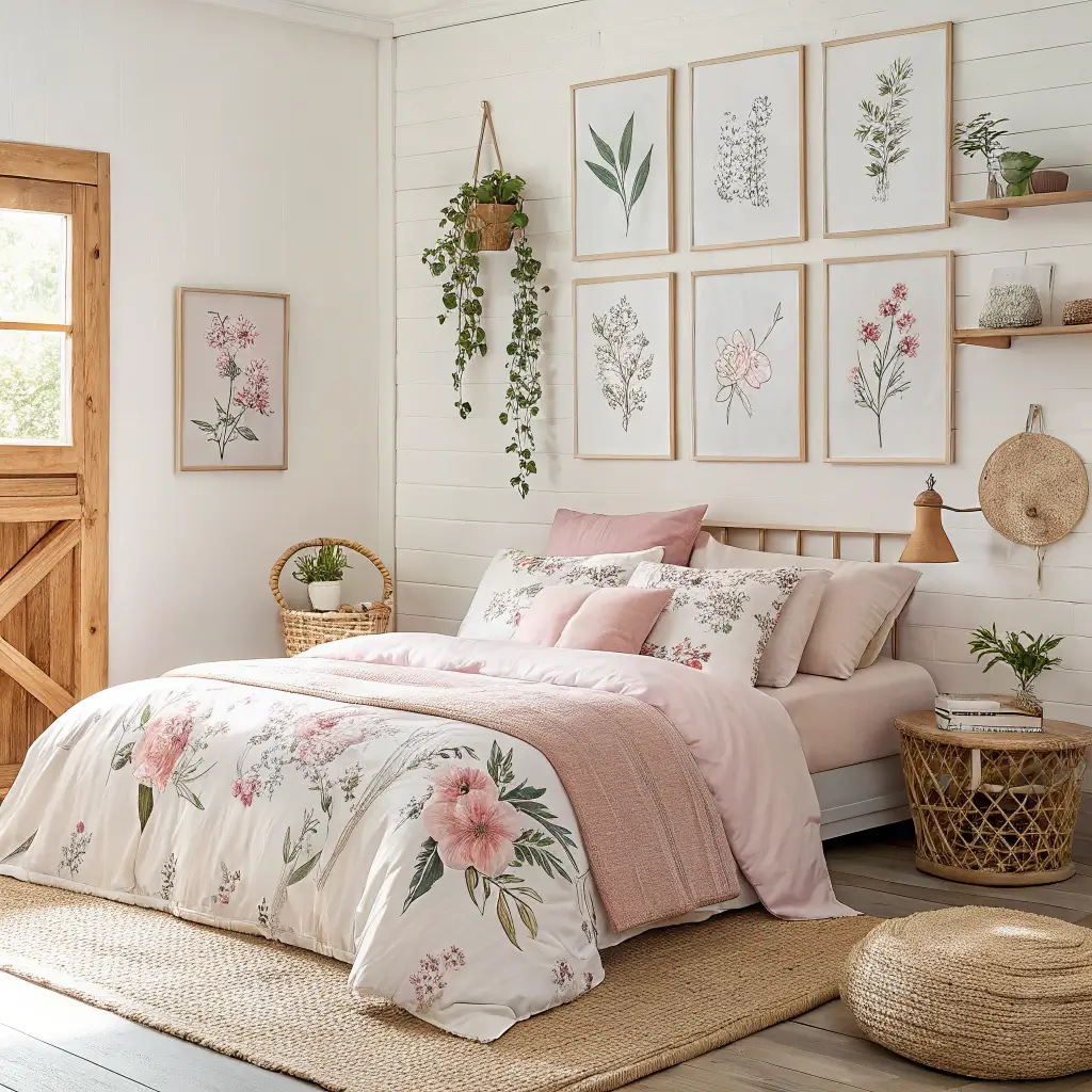 I spent months trying to nail this look, and here’s what actually works. Start with natural beige elements – think rattan headboards, jute rugs, and macramé wall hangings. Then weave in pink through patterned textiles and plants in pink pots.
