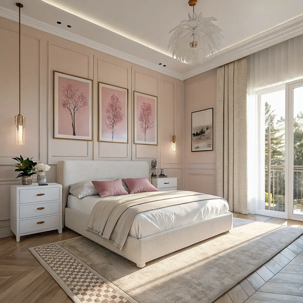 Soft Blush & Beige Minimalist Bedroom
