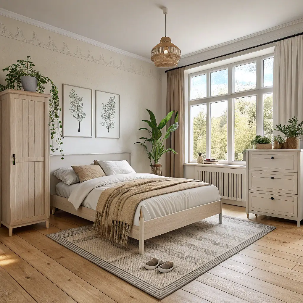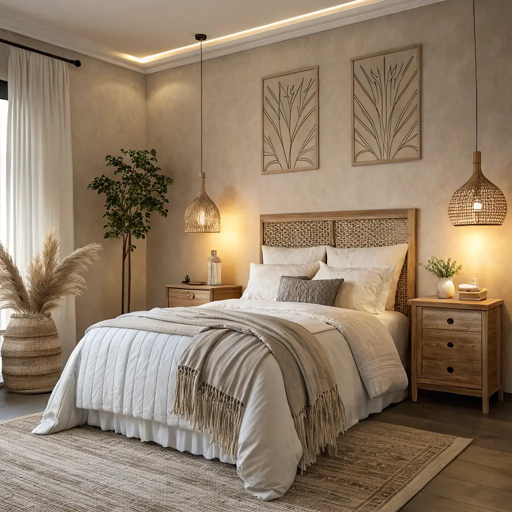 Beige Bedroom with Natural Wood Elements