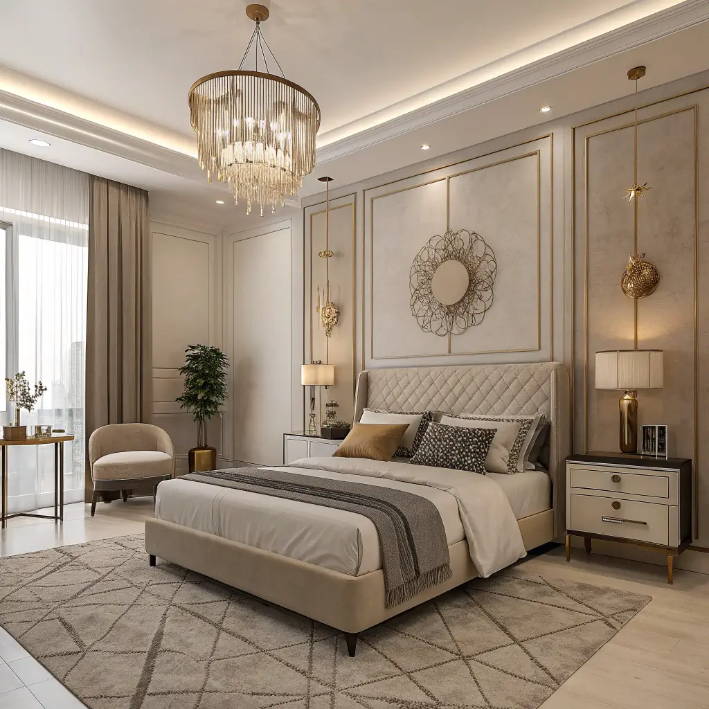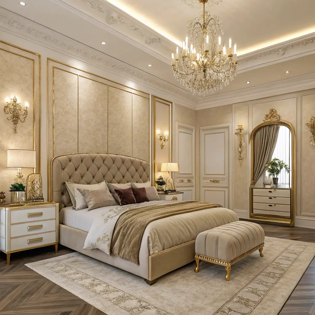 Luxe Beige Bedroom with Gold Details