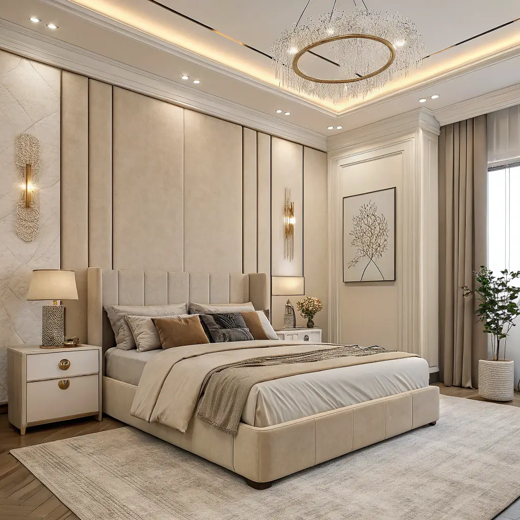 Elegant Beige Bedroom with Textured Fabrics