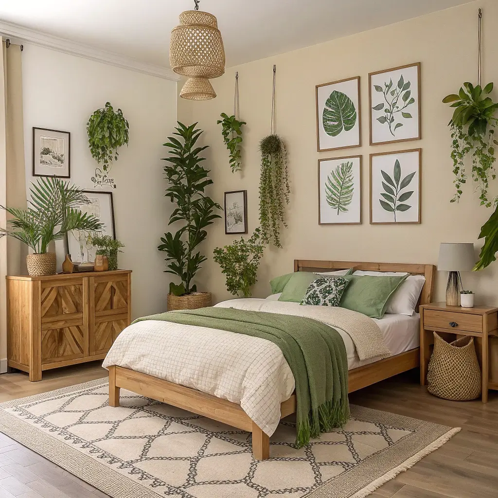 Beige and Green Nature-Inspired Bedroom