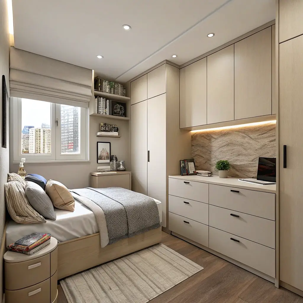 Maximize your tiny beige bedroom: