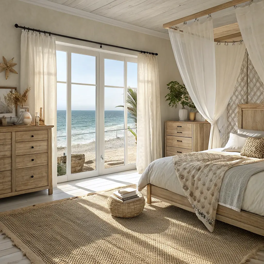 Natural light is crucial for this look. Sheer curtains that billow slightly in the breeze nail that breezy coastal feel. If you can’t have ocean sounds, at least you can have ocean vibes.