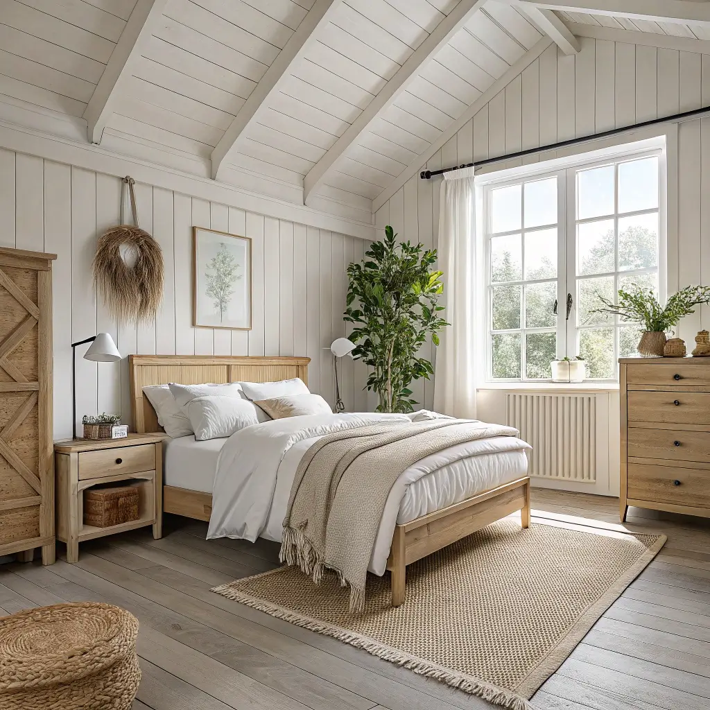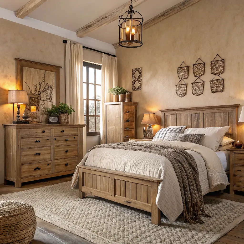 Rustic Beige Bedroom with Farmhouse Vibes
