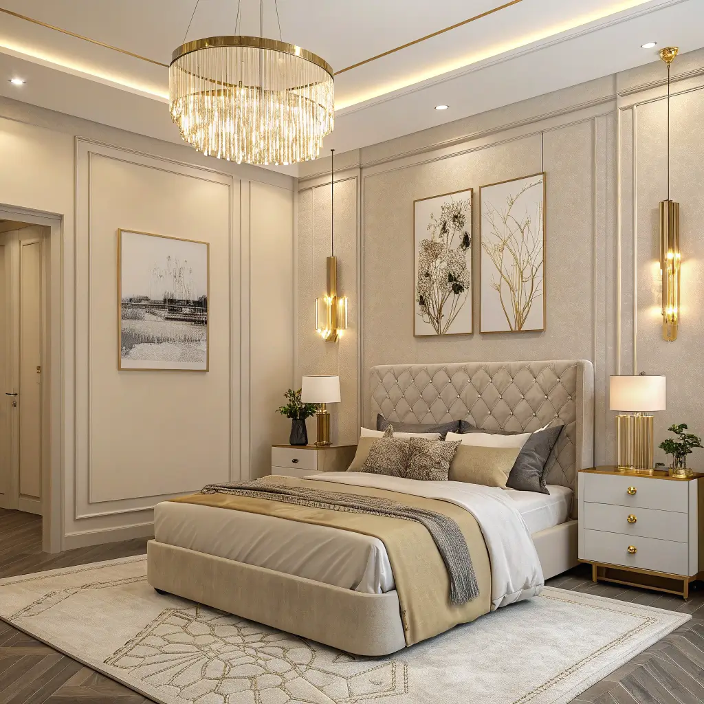 Modern Beige Bedroom with Gold Accents