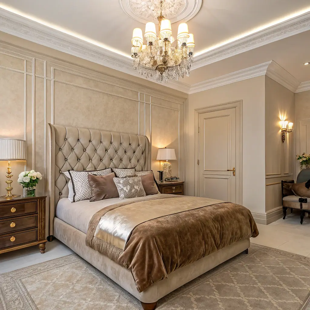 Elegant Beige Bedroom with Velvet Bedding