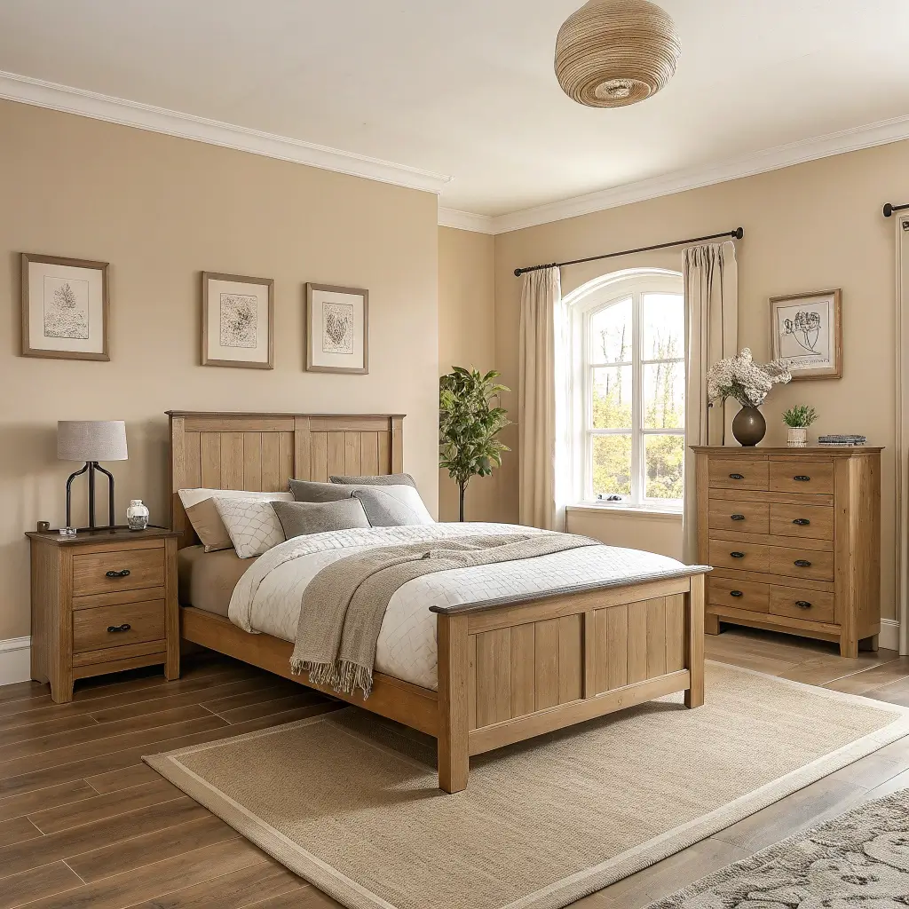 Neutral Beige Bedroom with Wooden Furniture