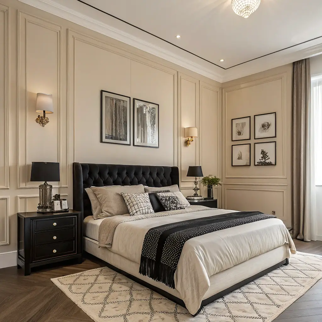 Beige Bedroom with Black Accents