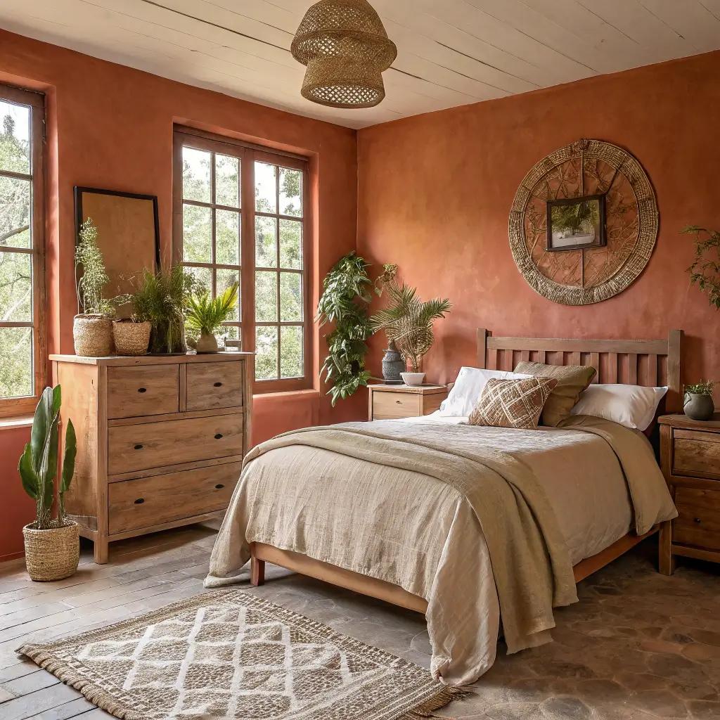 - Warm terracotta or clay for main walls