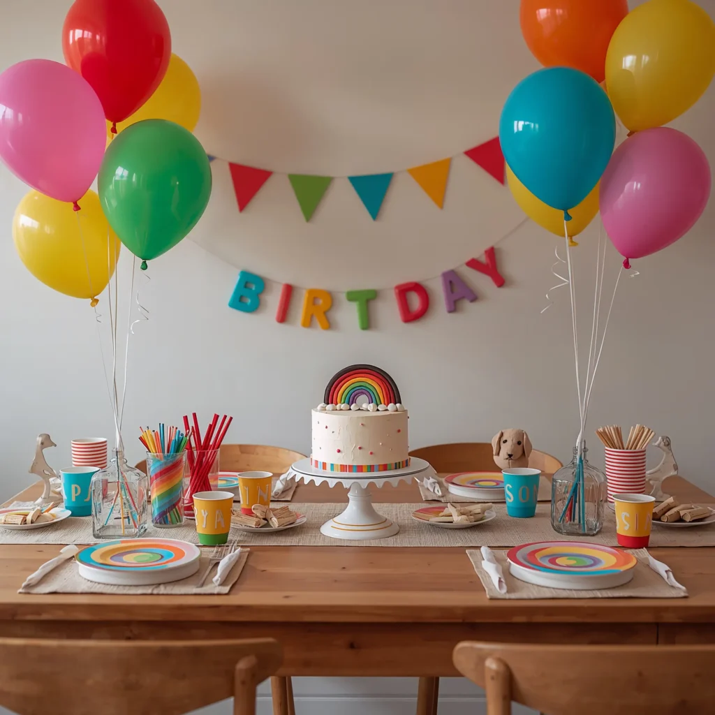 Layer your rainbow elements rather than hitting guests over the head with color. Maybe rainbow balloon clusters at the entrance, ombre napkins on the table, and a gradient backdrop for photos. Each element adds to the theme without overwhelming the space.