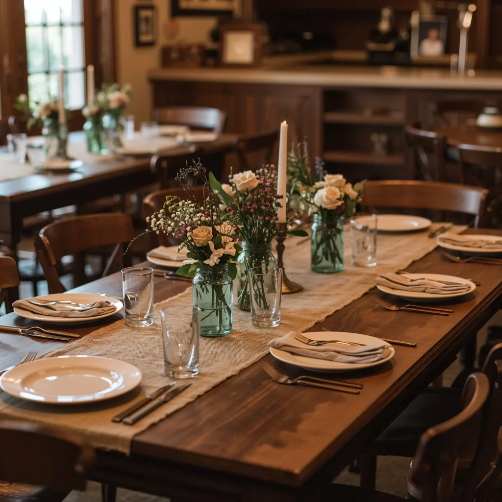 My go-to formula: one tall arrangement as the focal point, surrounded by 2-3 smaller arrangements at varying heights. It creates visual interest without blocking conversation across the table.