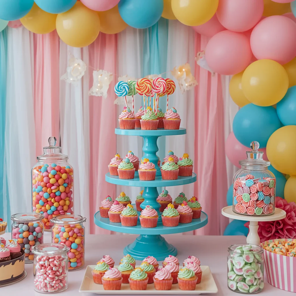 Height variation makes your sweet table visually interesting. Use cake stands, boxes covered in colorful paper, or even upside-down bowls to create different levels for displaying treats.